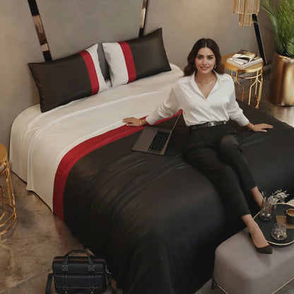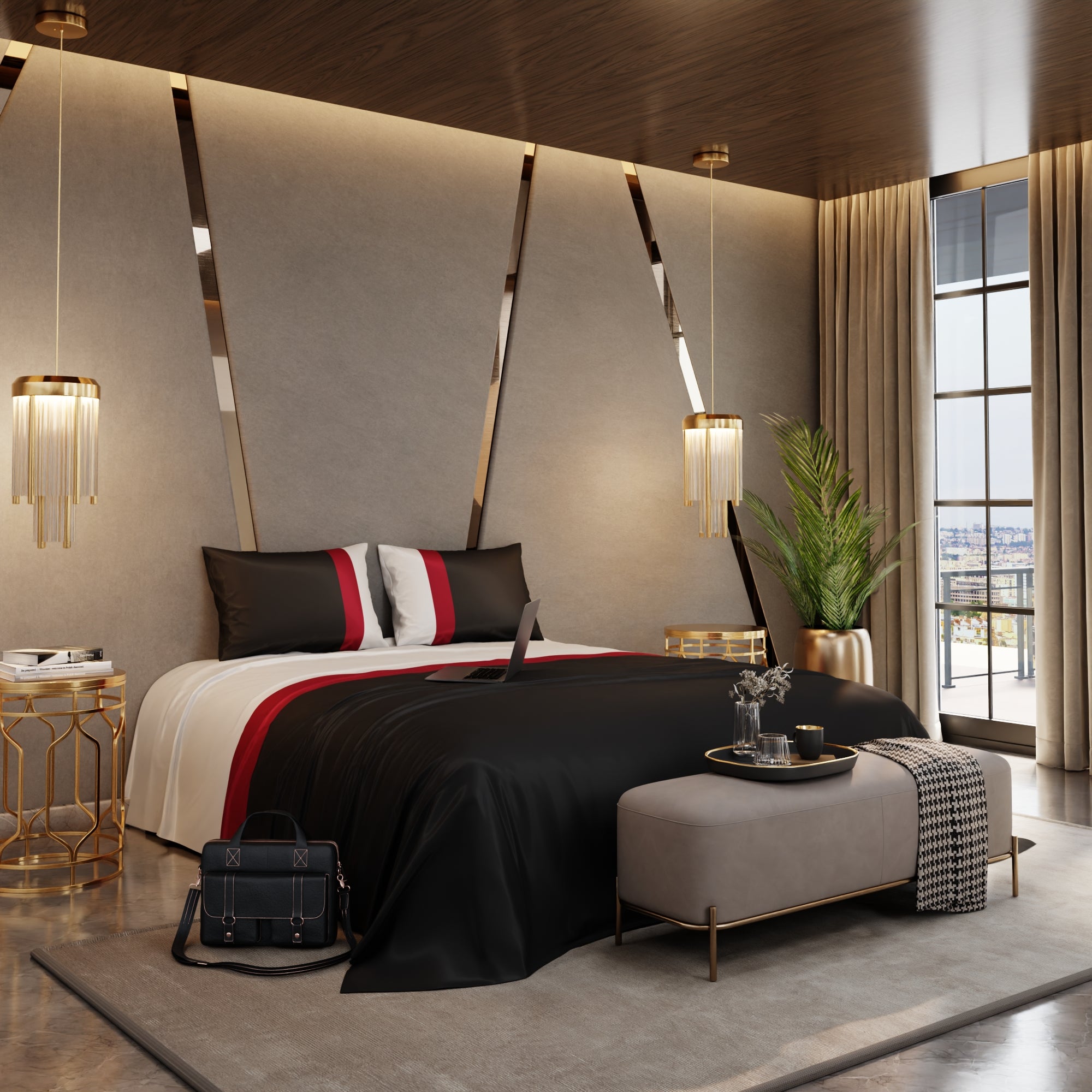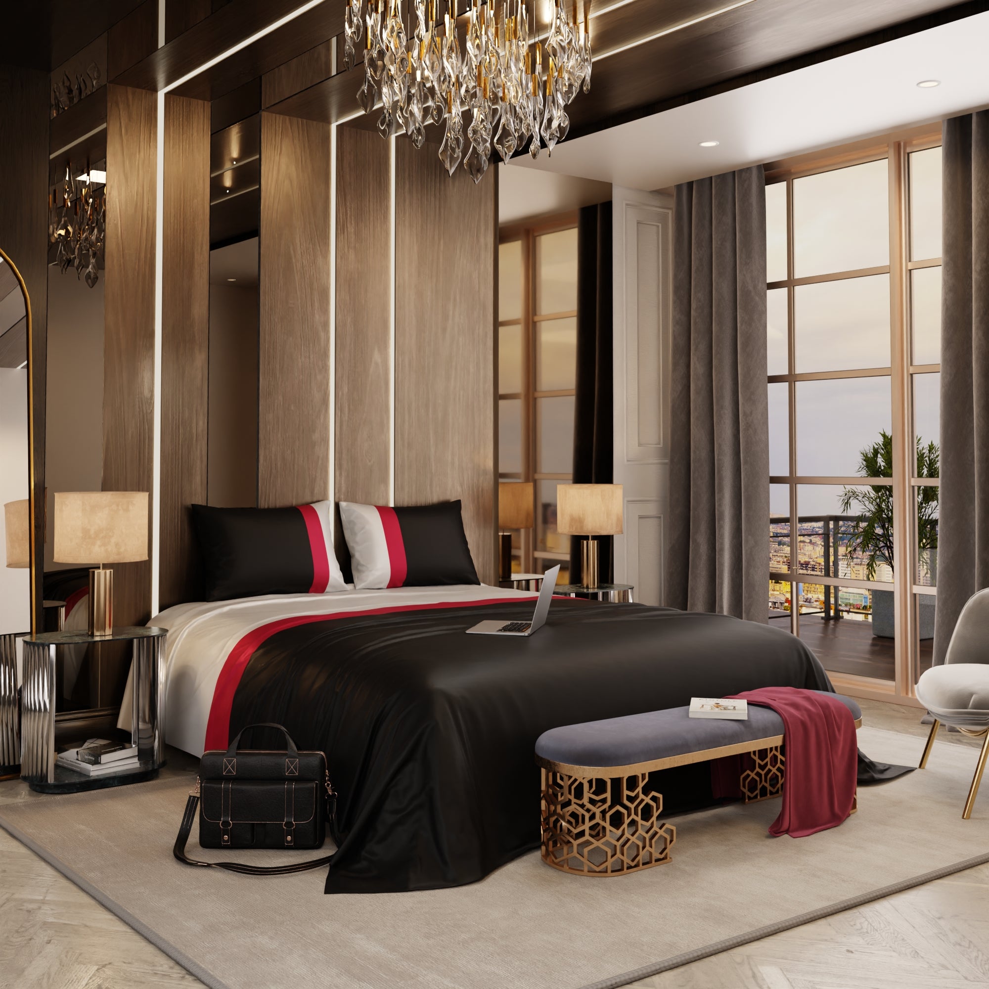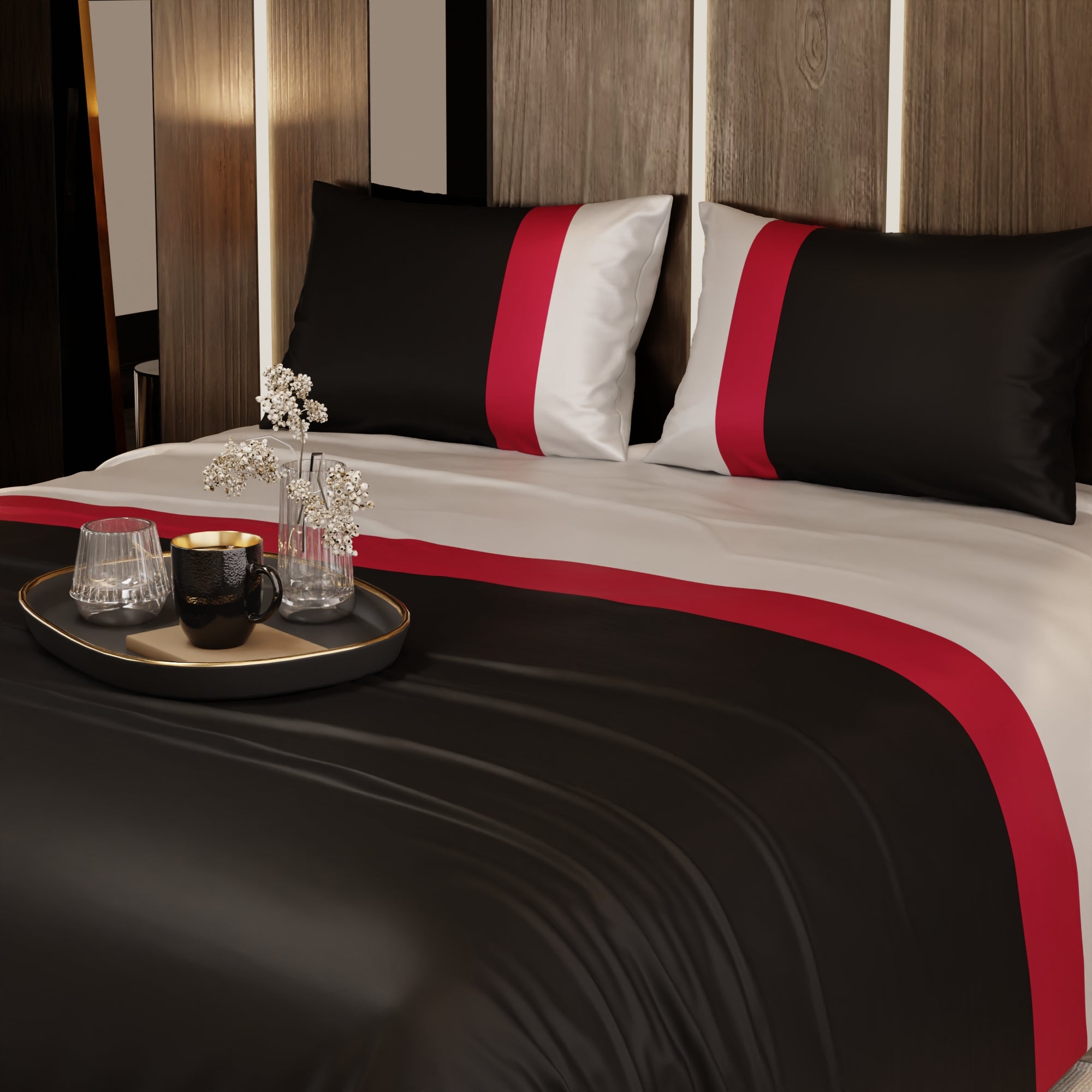 With the Stoa Paris Vogue Bedding Collection - Rooftop Views Trio, you're not just decorating your bedroom; you're creating a retreat where comfort and style come together. This exquisite satin bedsheet, graced by a combination of champagne, red, and emerald green tones, envelops your sleeping space in an ambience that radiates warmth and sophistication. Elevate your bedroom decor with this refined bedding collection, where luxury and relaxation converge in perfect harmony.