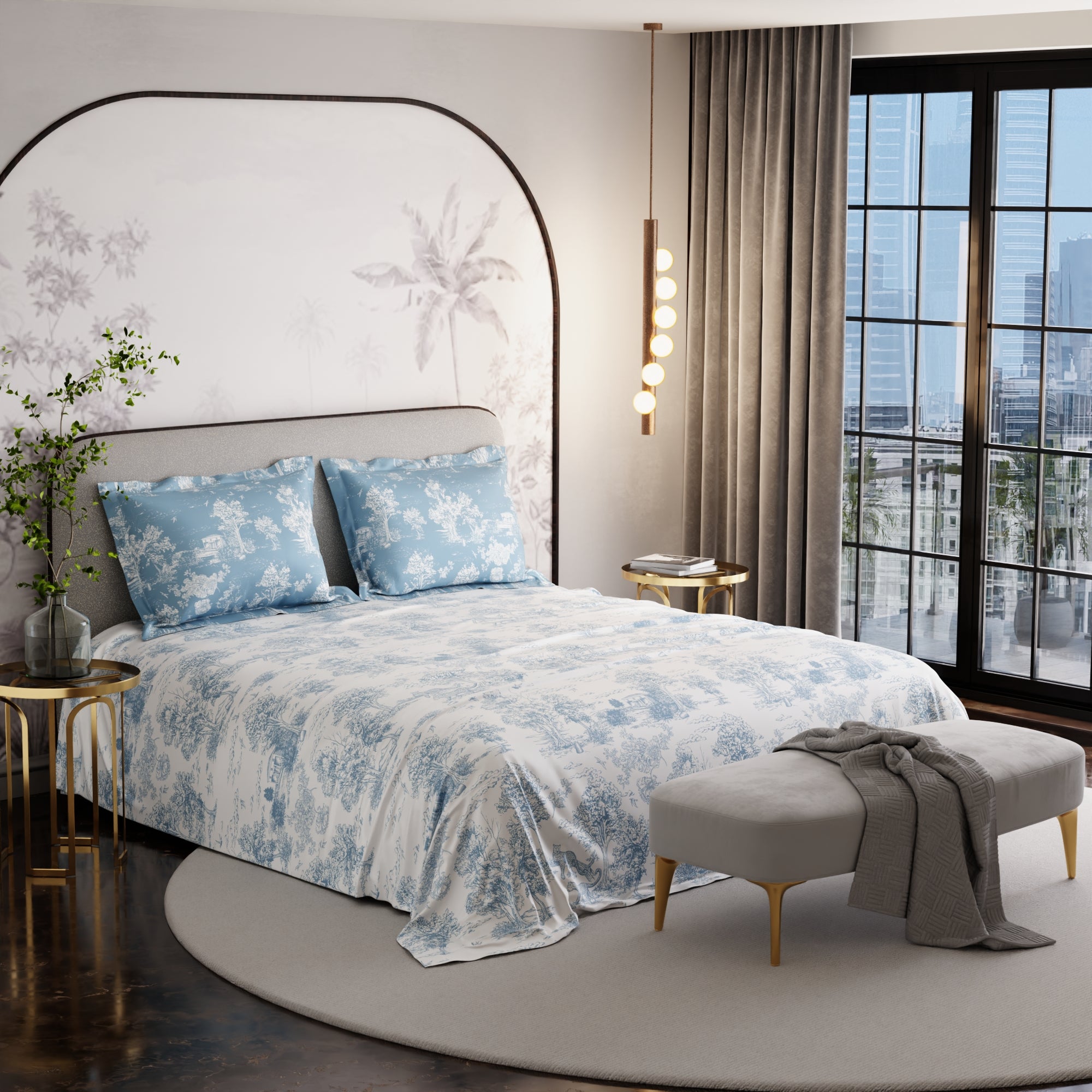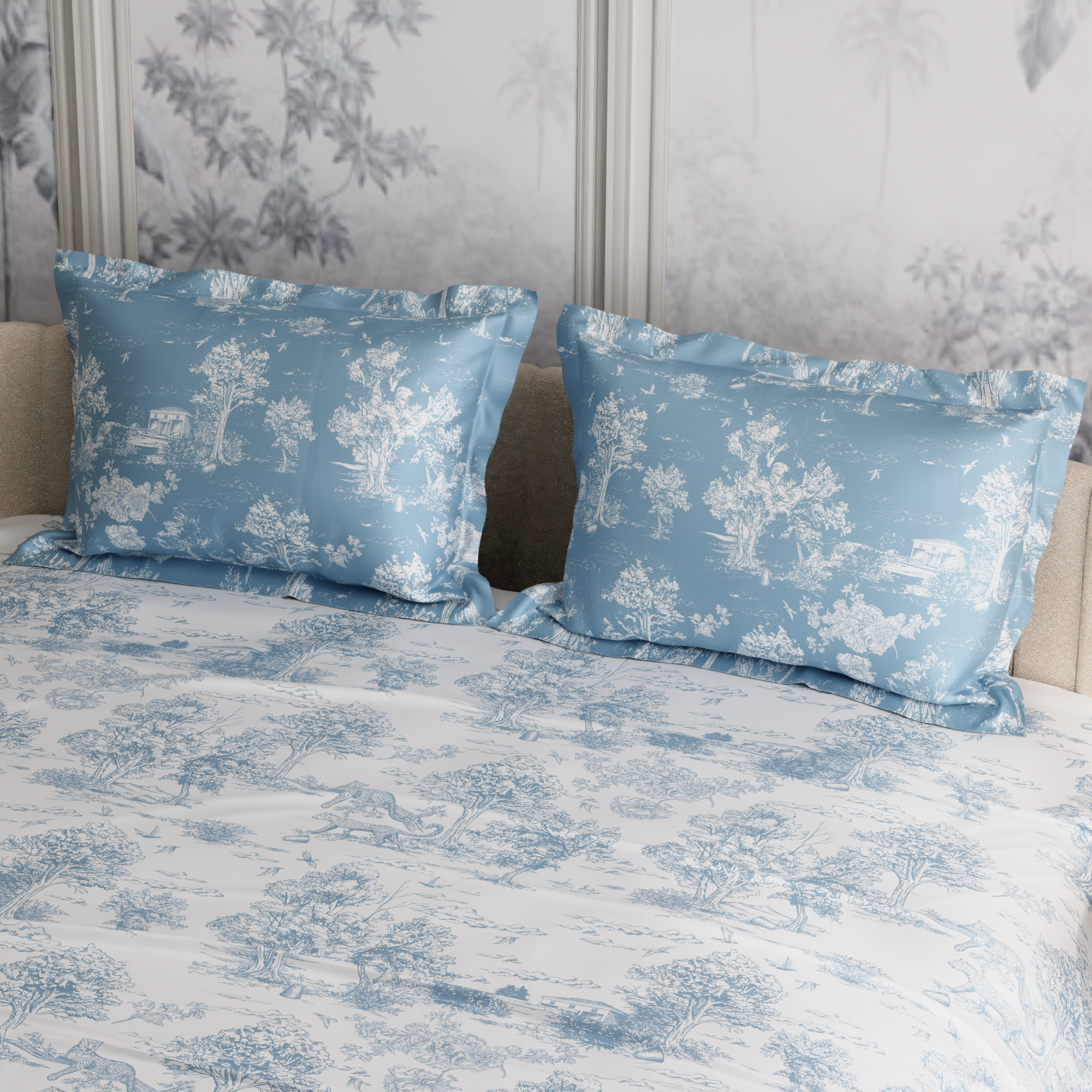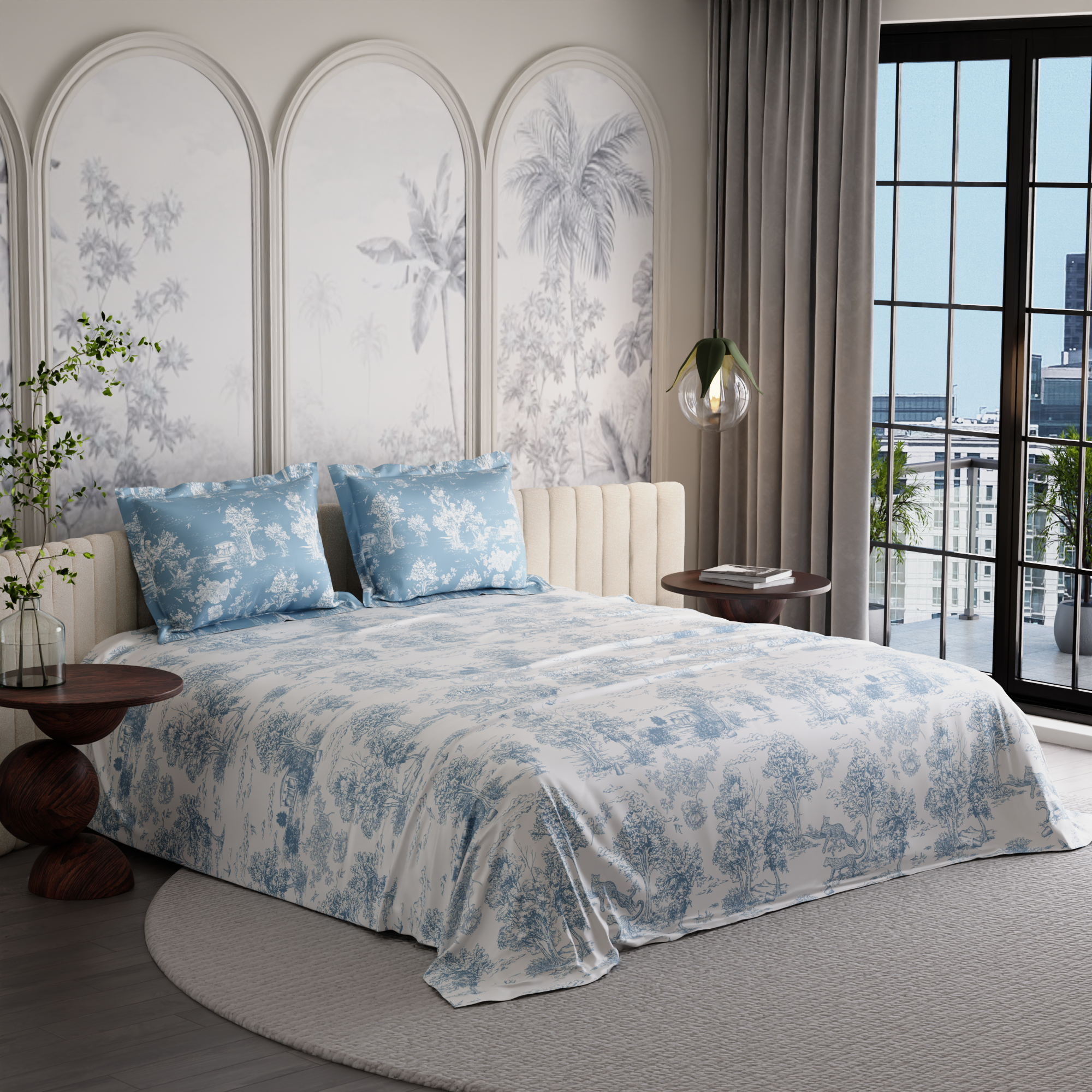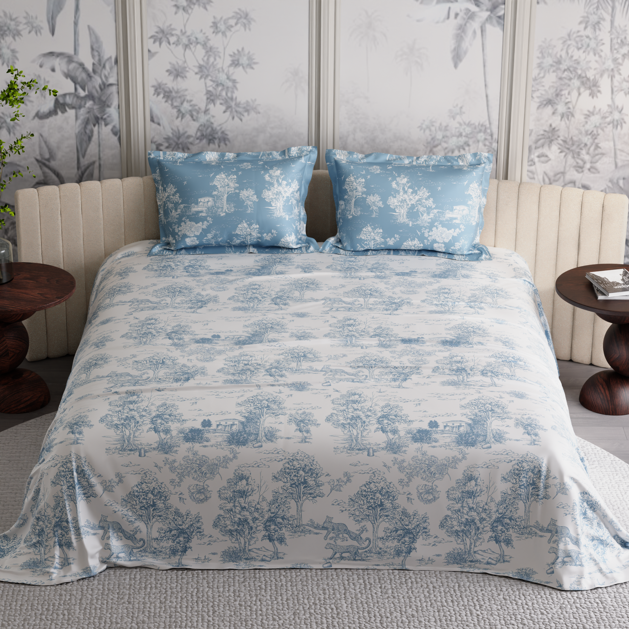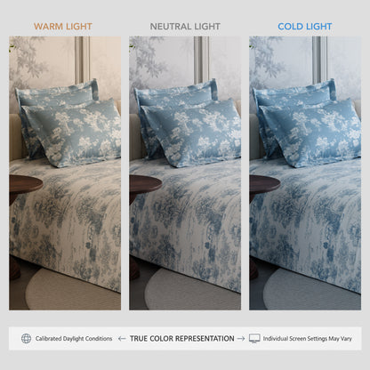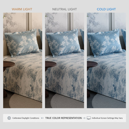 Floral that feels like snow falling on a still Paris morning. Snow Flower 100% premium cotton bedsheet set in 300 TC reimagines bloom time through a cooler lens—minimal, composed, and quietly striking. Printed in a soft blue-on-white palette, the design brings a sense of calm and clarity to your space. Fashionable, elegant, and made to impress—this is the beauty of French floral artistry.
