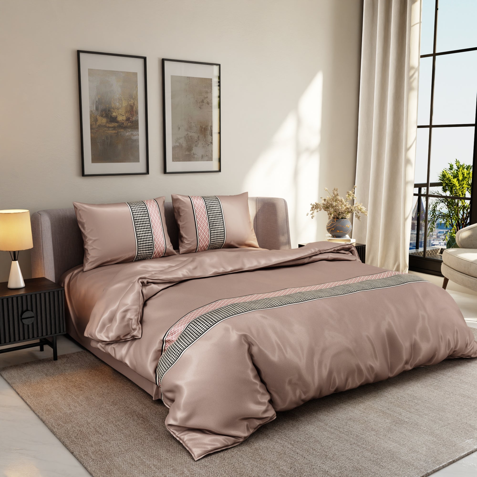 The satin weave imparts a sumptuously smooth and feather-light texture to the comforters, offering a silky, soft feel.