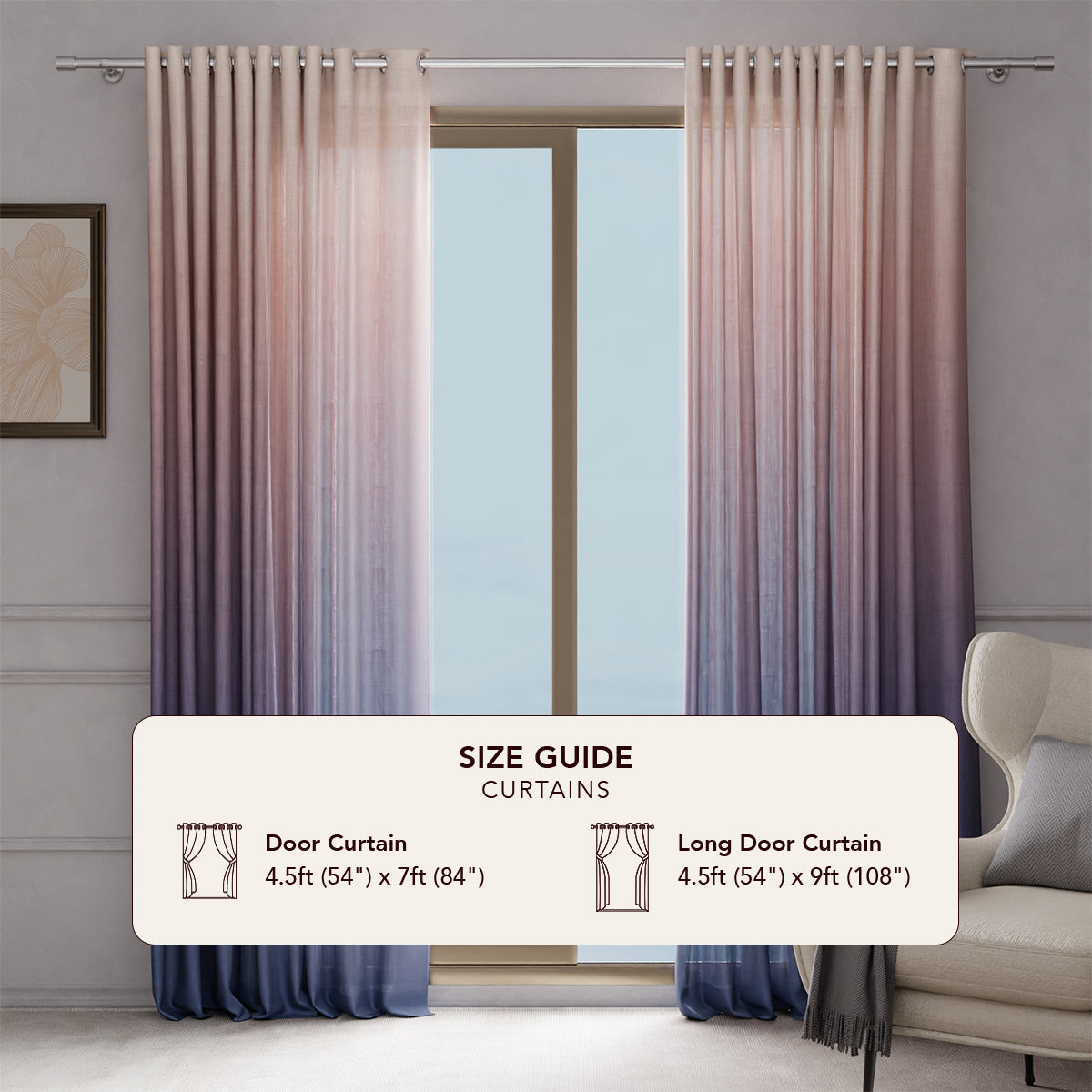 - Long Door Curtain Includes: 1 Curtain 4.5ft (54") x 9ft (108")