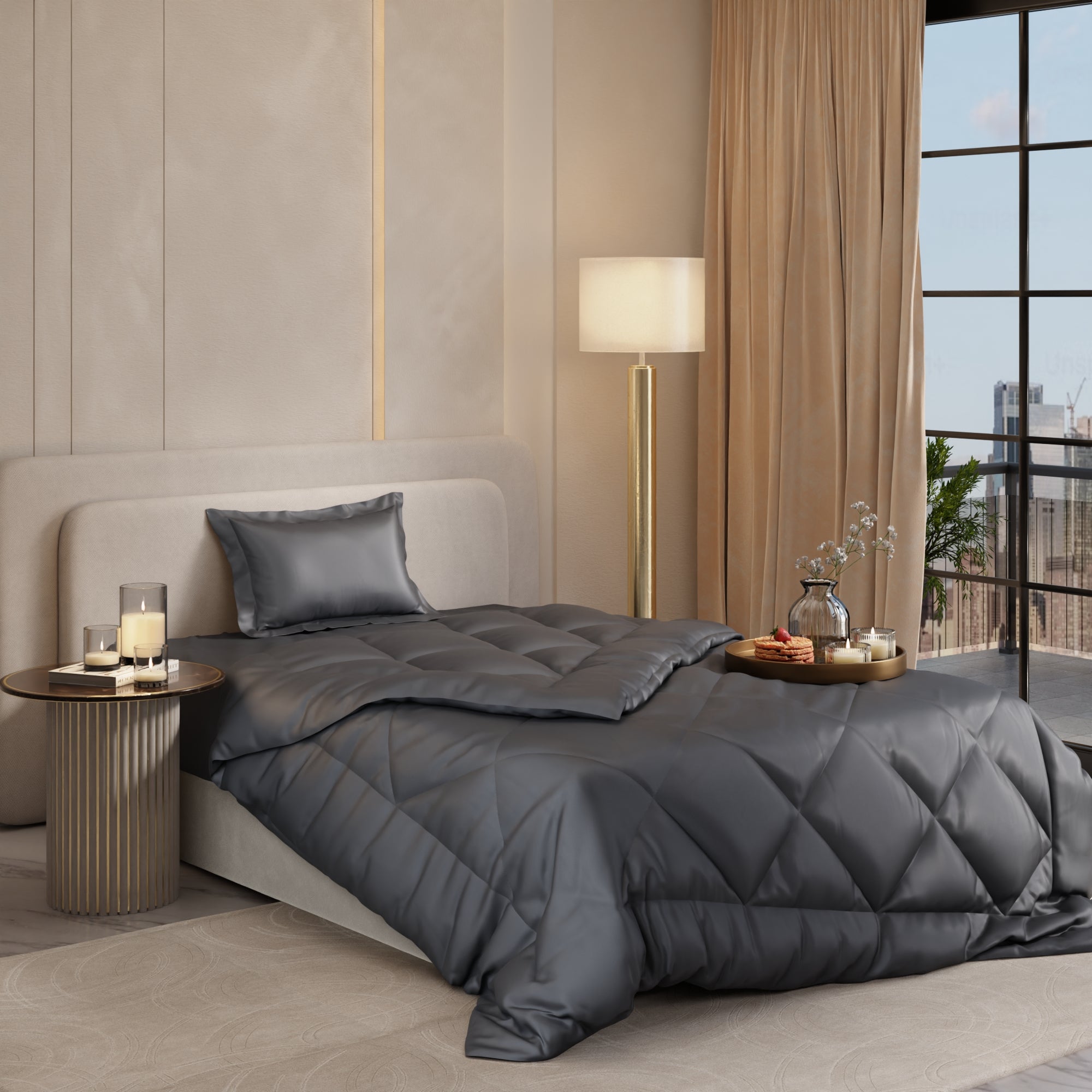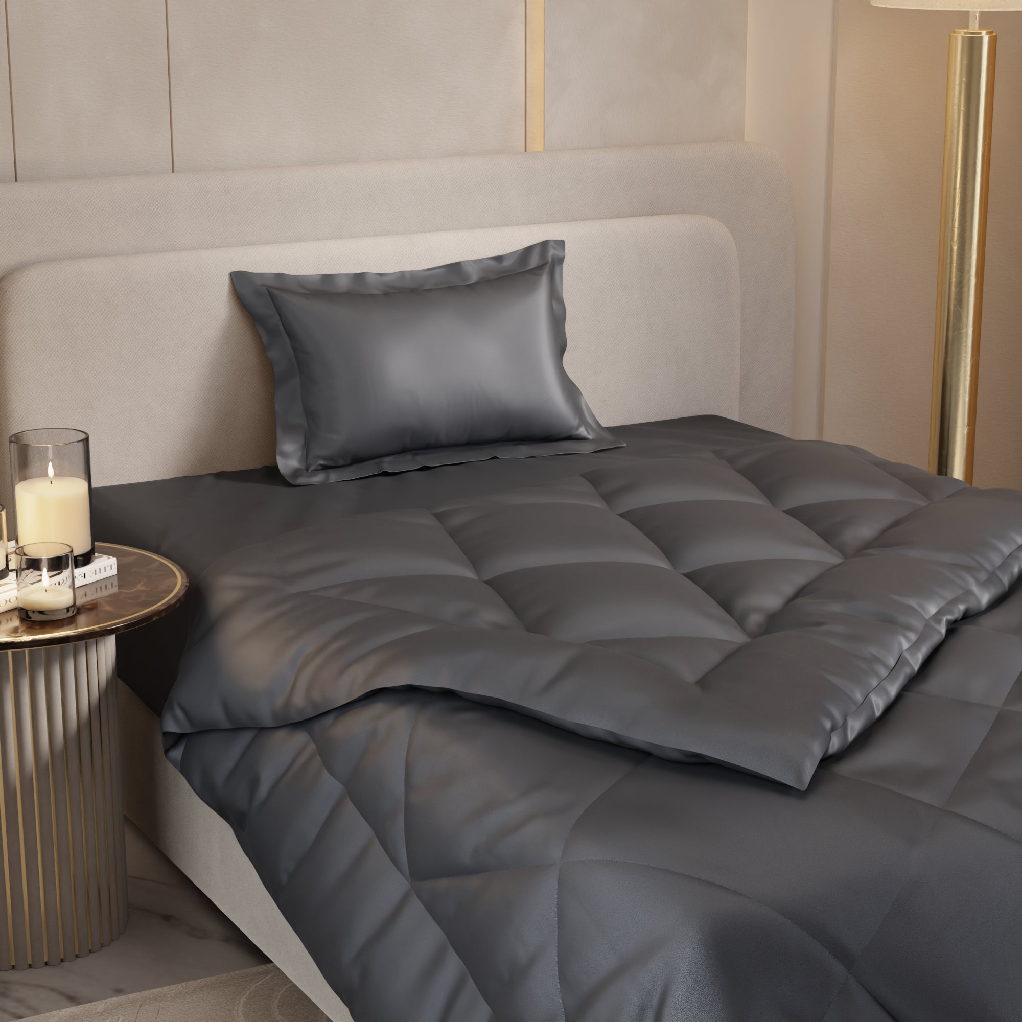 Crafted with premium materials, this Comforter offers the perfect balance of warmth and style for your bedroom. Whether you want a cosy and stylish bedding addition or reliable warmth, it effortlessly blends comfort and sophistication for a restful night’s sleep.