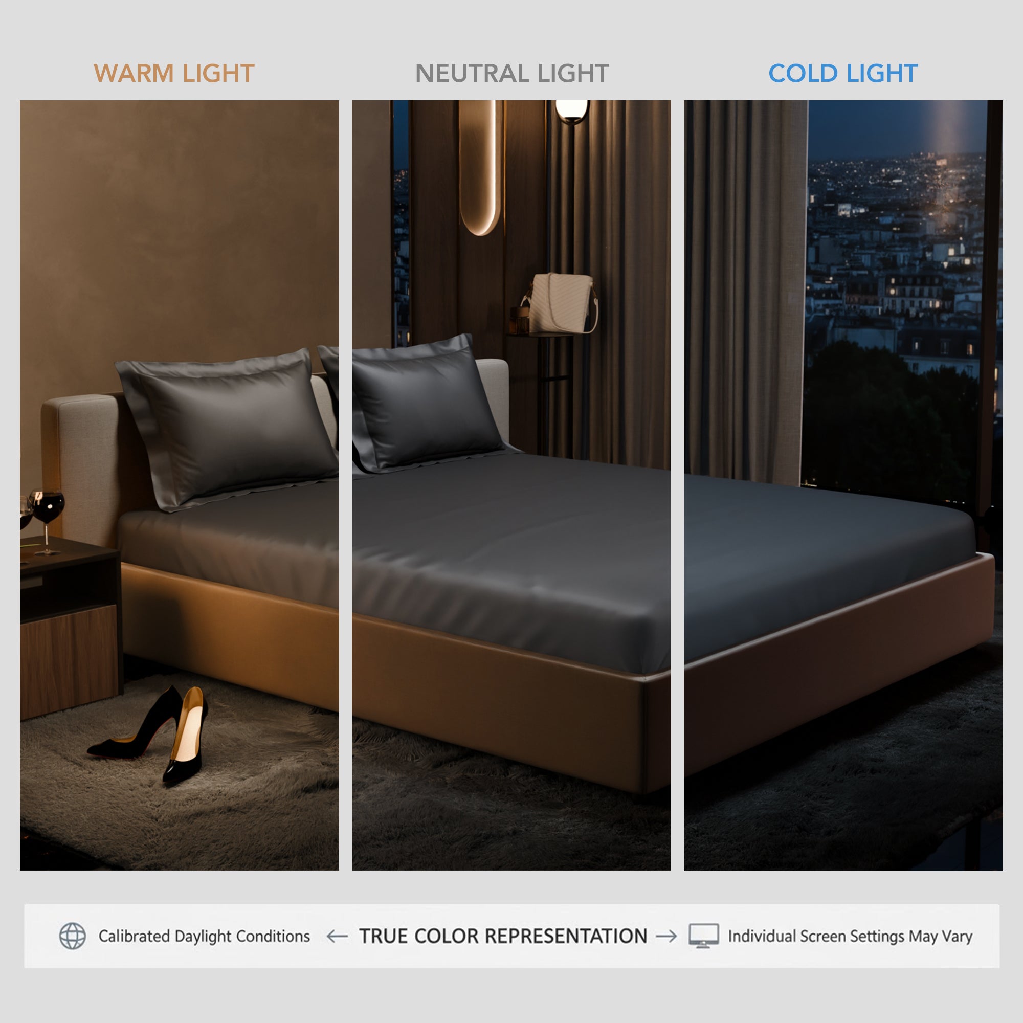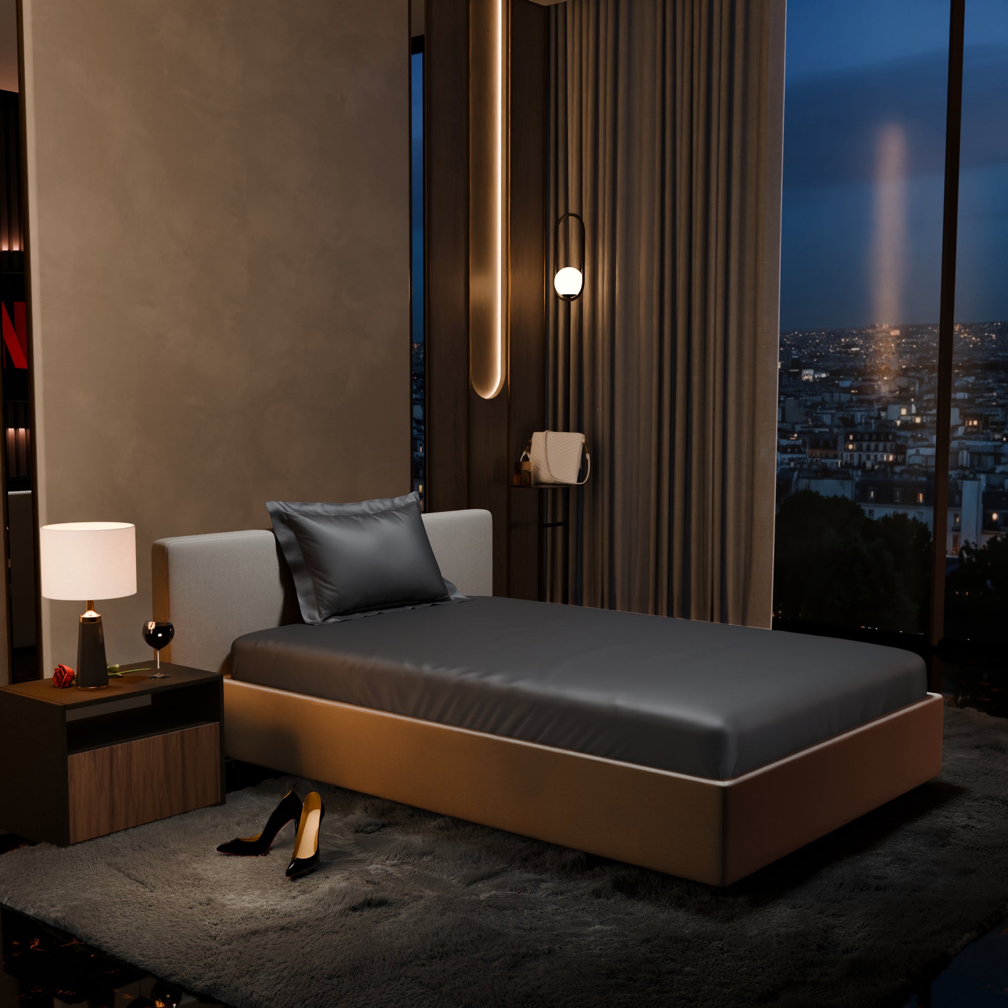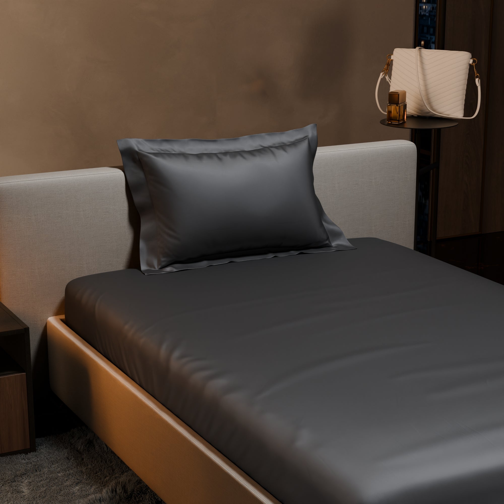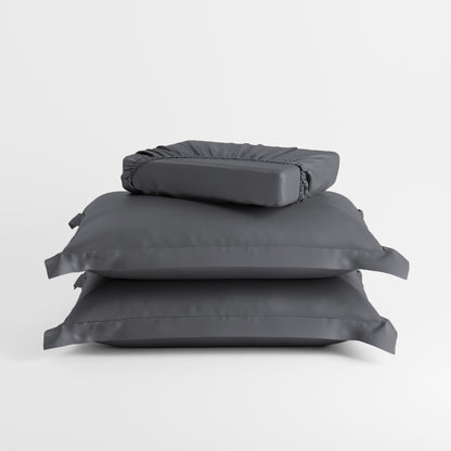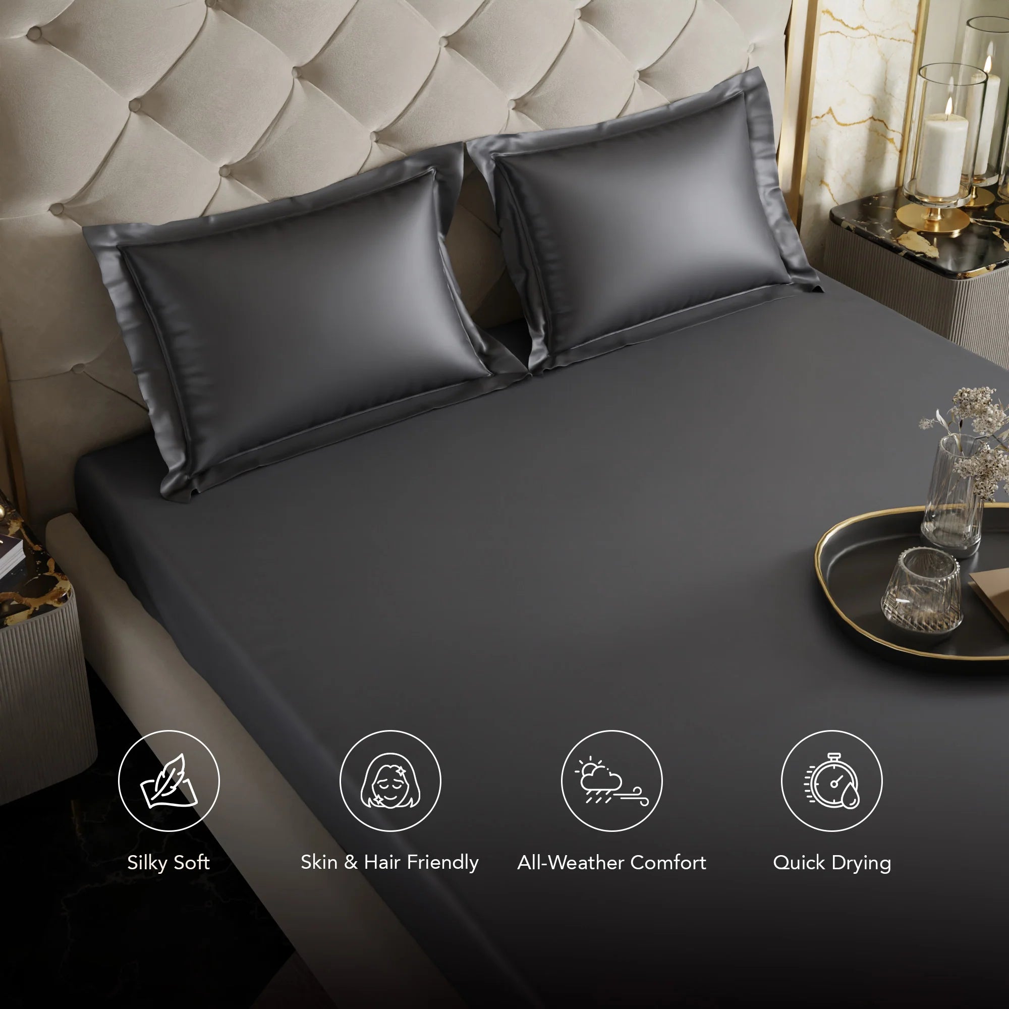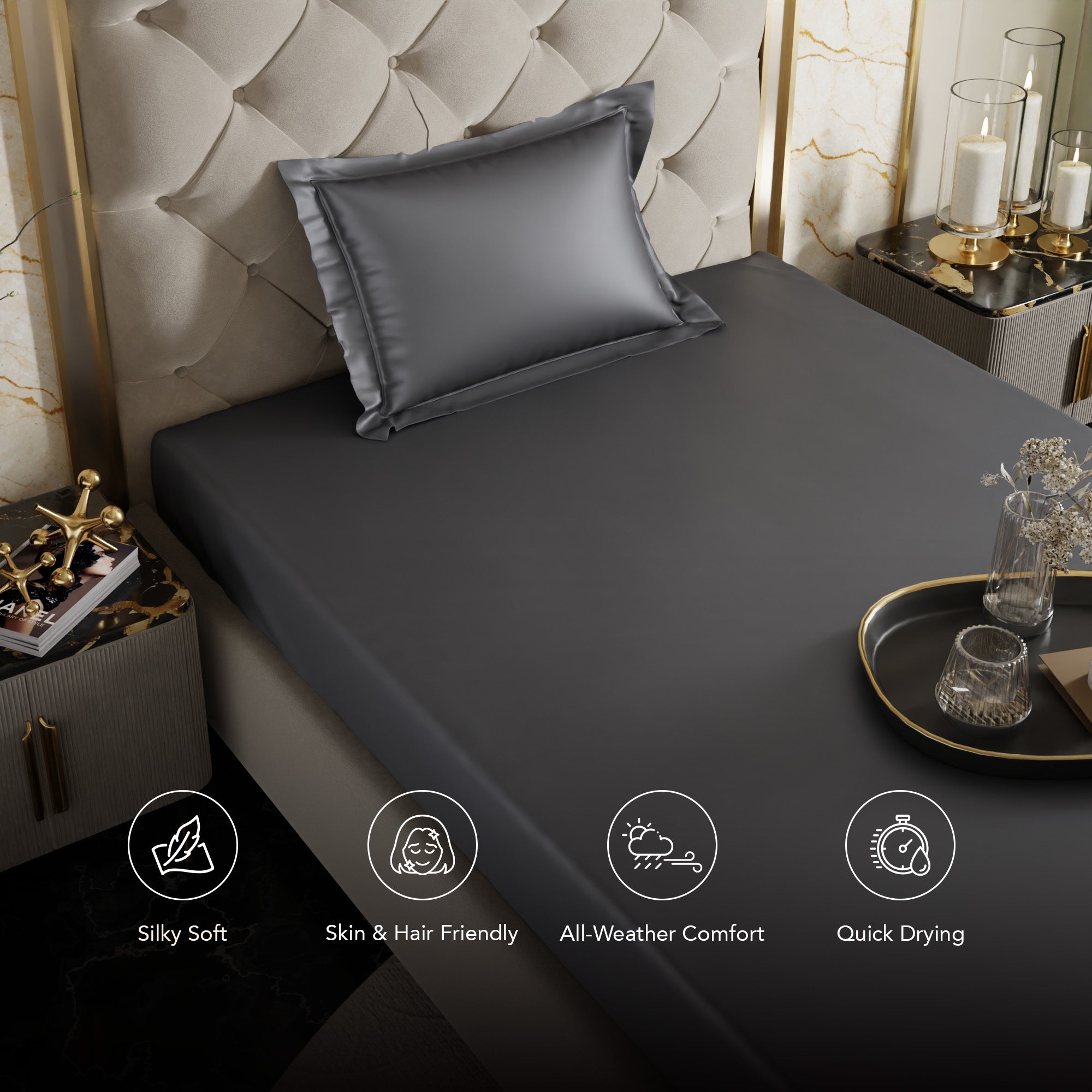 Uplift your room with an element of grace with the subtle grey tones of Twilight Embrace. These silky smooth satin linen bed sets are designed to add a touch of opulence and romance to your intimate moments.