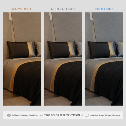 With the Stoa Paris Vogue Bedding Collection - Urbane Tricolor, you're not just decorating your bedroom; you're creating a retreat where comfort and style come together. This exquisite satin bedsheet, graced by a fusion of harbour mist grey, gold, and black tones, envelops your sleeping space in an ambience that radiates luxury and modern sophistication. Elevate your bedroom's aesthetic with this sophisticated bedding collection, where luxury and relaxation come together in perfect harmony.