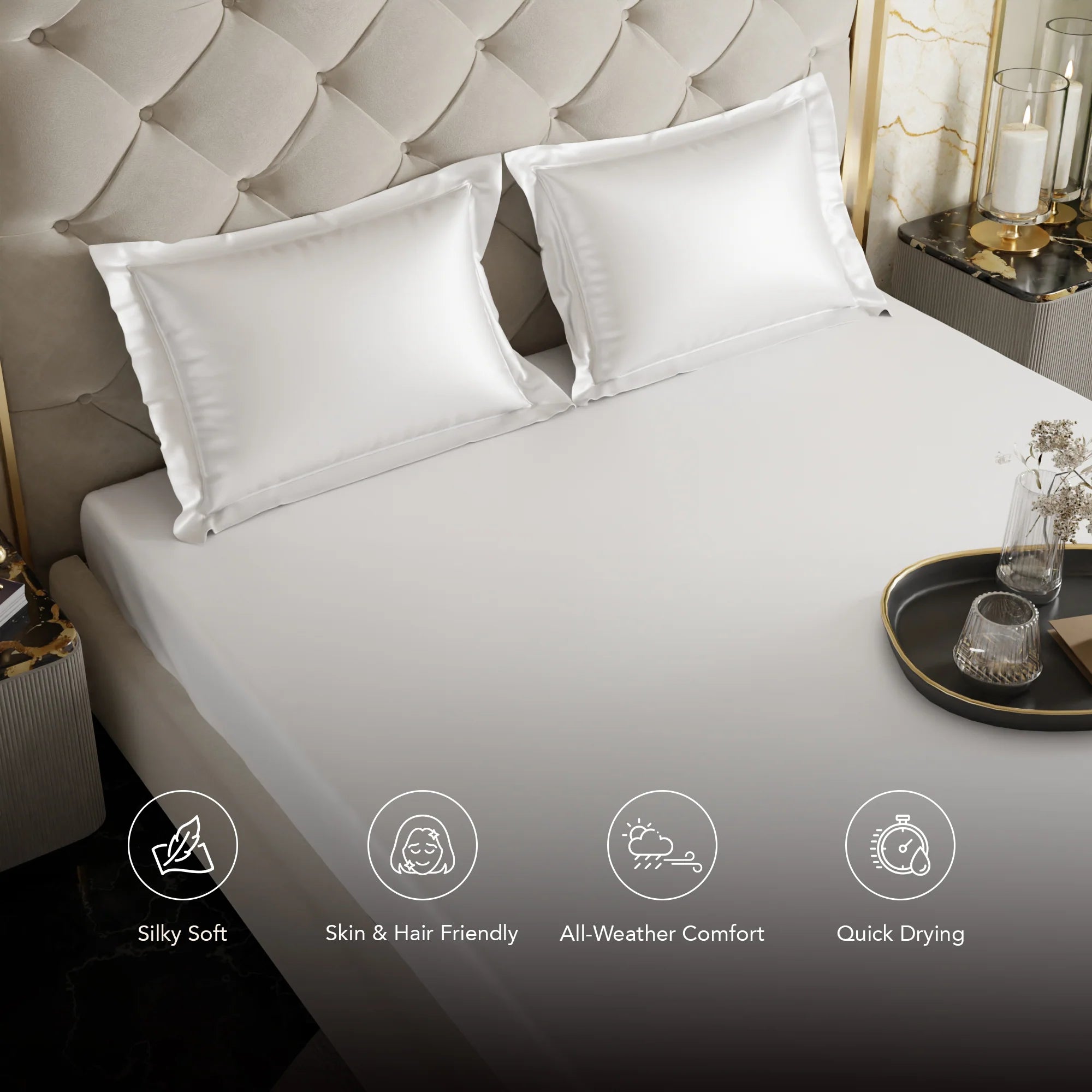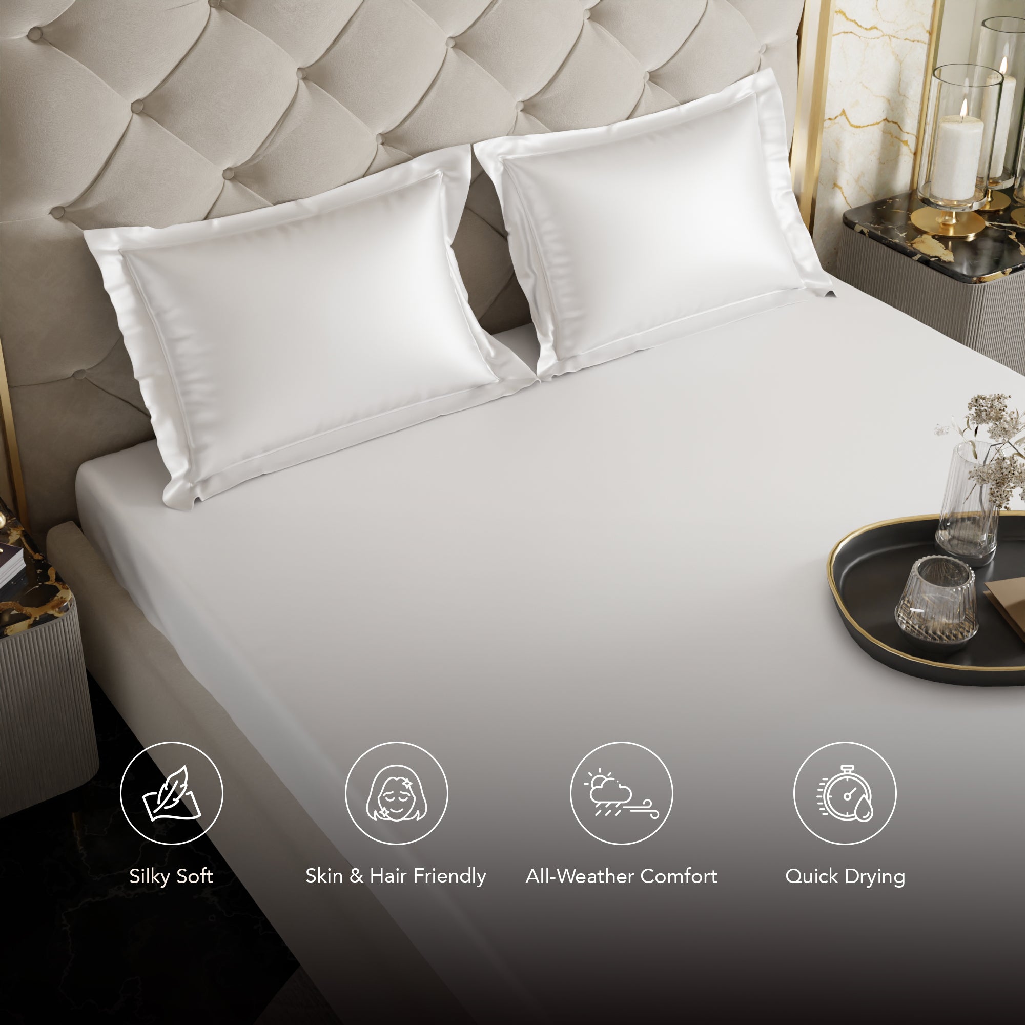 Slip between clouds of pure bliss, with the pristine and pearly Vanilla White.These silky smooth satin linen bed sets are designed to add a touch of opulence and romance to your intimate moments.