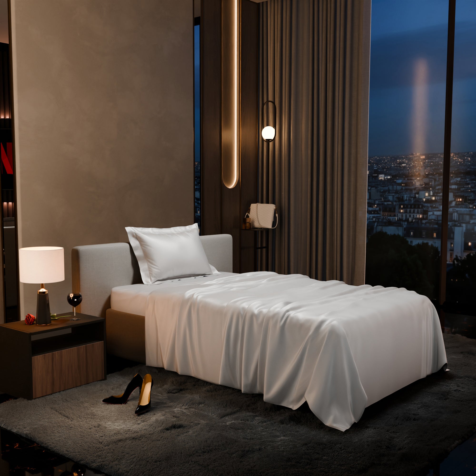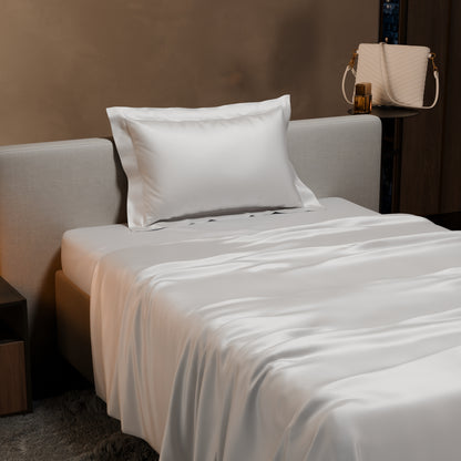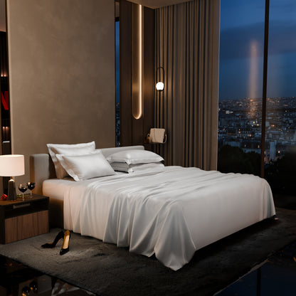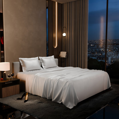 Slip between clouds of pure bliss, with the pristine and pearly Vanilla White.These silky smooth satin linen bed sets are designed to add a touch of opulence and romance to your intimate moments.
