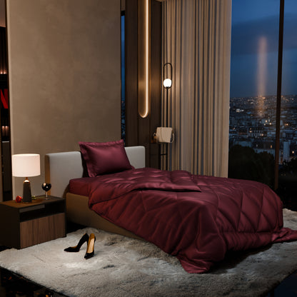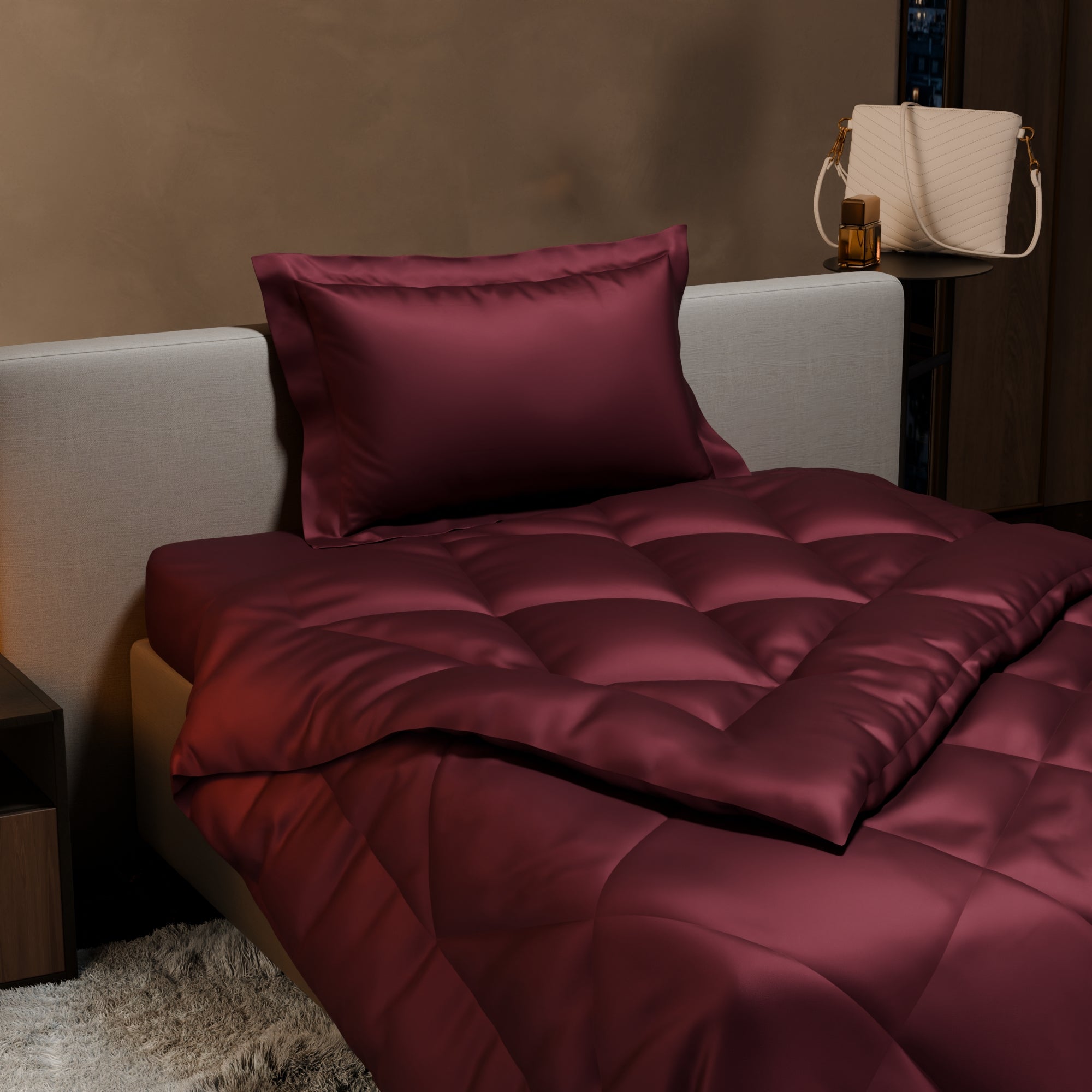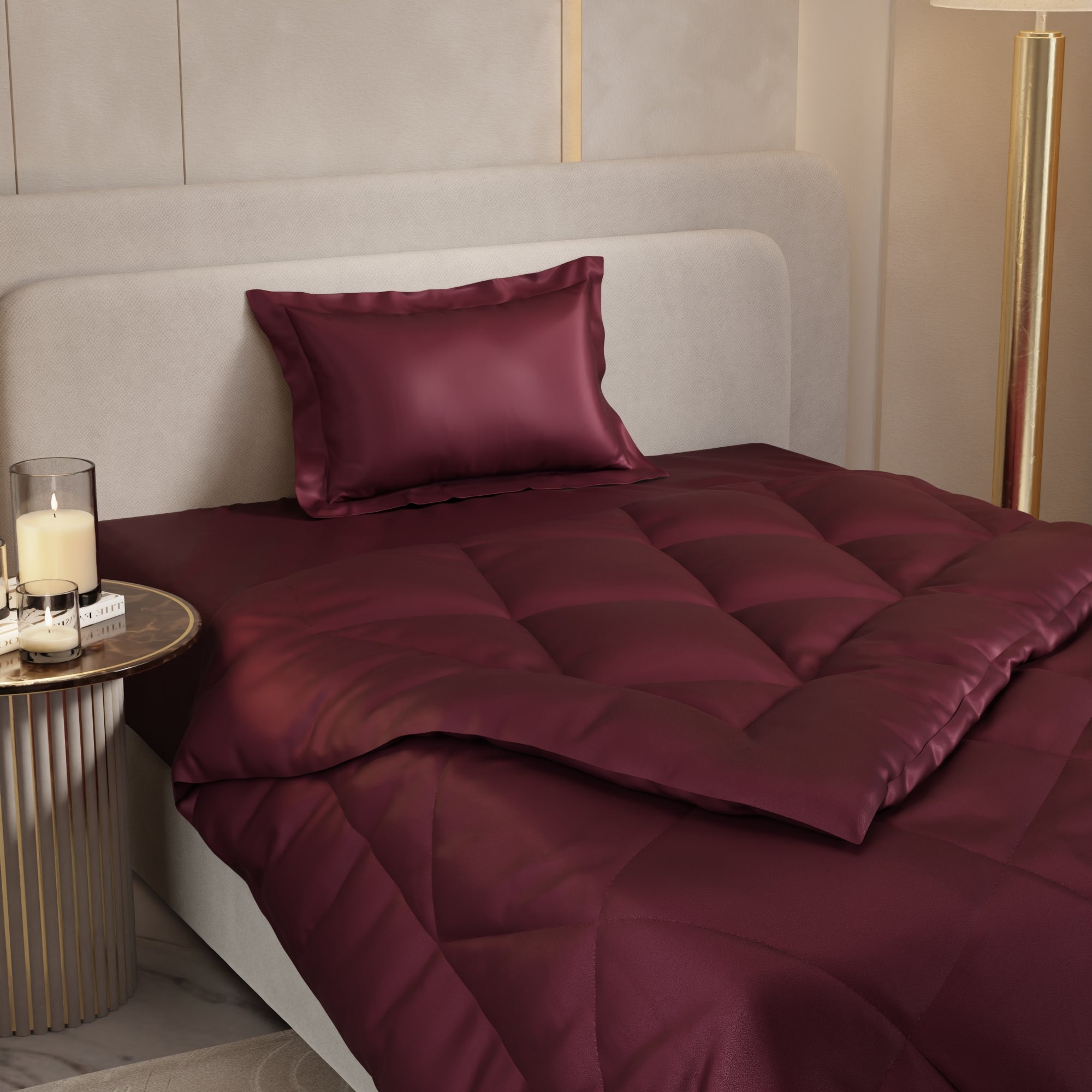 This 100% polyester UltraSatin Comforter can be machine-washed, tumbled dry, or ironed at low temperatures. Do not bleach. Do not dry in direct sunlight. Learn More
