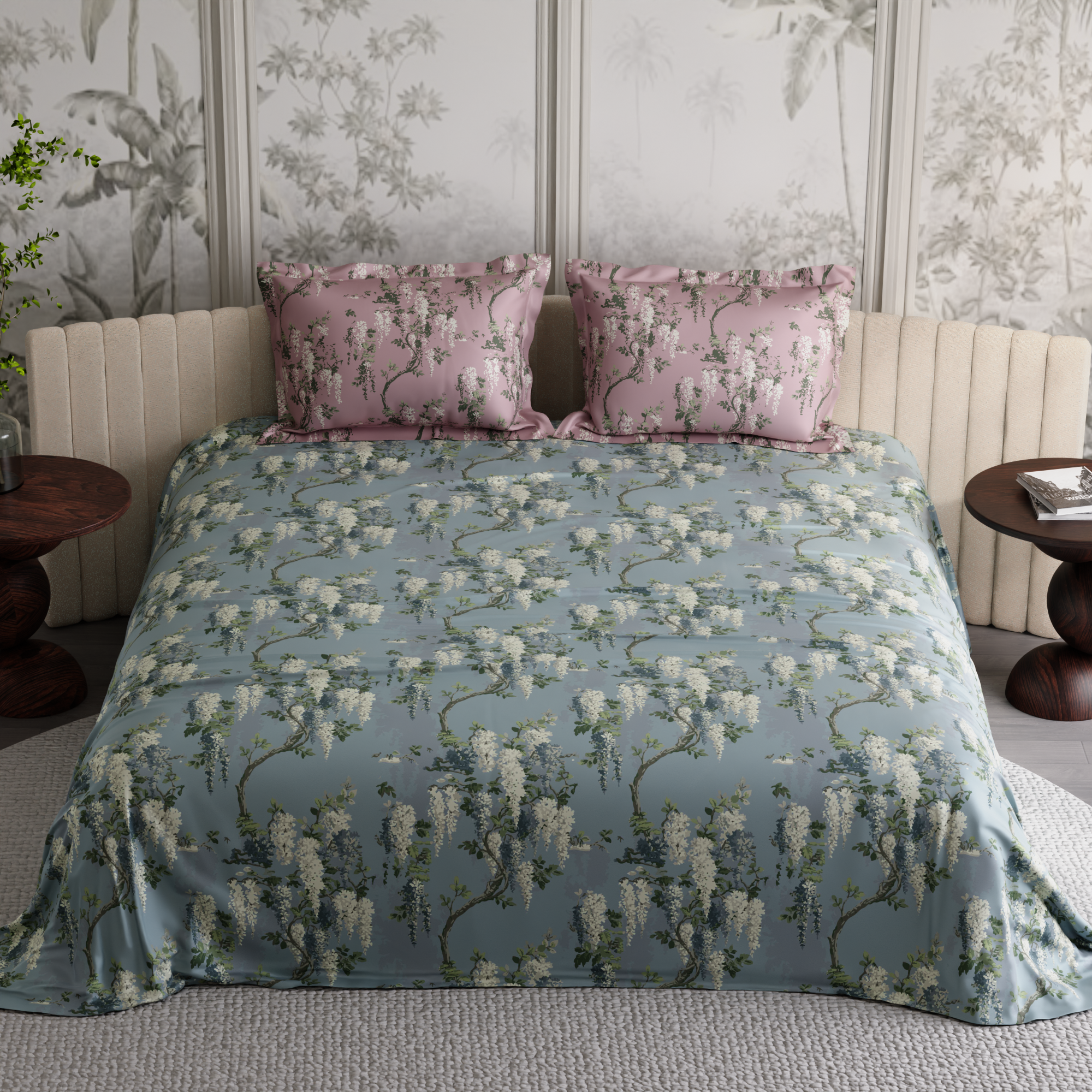 Wild Magnolia is not your average garden print. Drawing from the order and artistry of classic French botanical design, this 100% premium cotton bedsheet set in 300 TC blends softness with structure—every petal placed, every detail intentional. Fashionable, elegant, and made to impress—this is the beauty of French floral artistry.